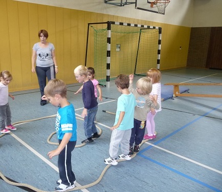 Ein regelmäßig stattfindendes Turnangebot in der gegenüberliegenden Eifelgoldhalle bietet die Möglichkeit leichte Defizite in der Motorik der Kinder zu beobachten und durch spielbetonte, kindgerechte Bewegungsangebote zu verbessern.
