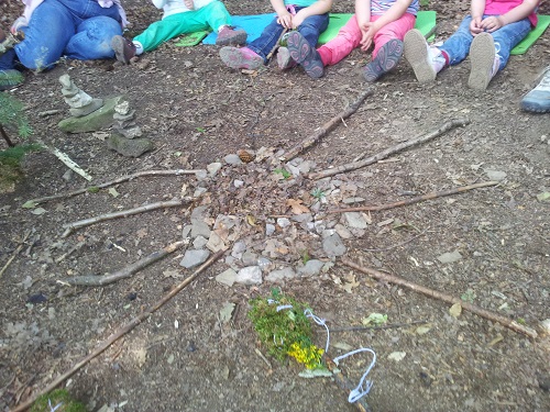 Im Waldkindergarten, auf dem Außengelände oder beim Wandern sammeln die Kinder Steine, Blätter, Federn, Tannenzapfen und sortieren diese nach Größe, Form, Farben, usw. Anschließend sprechen wir über die Eigenschaften und kleben diese als Collage auf.